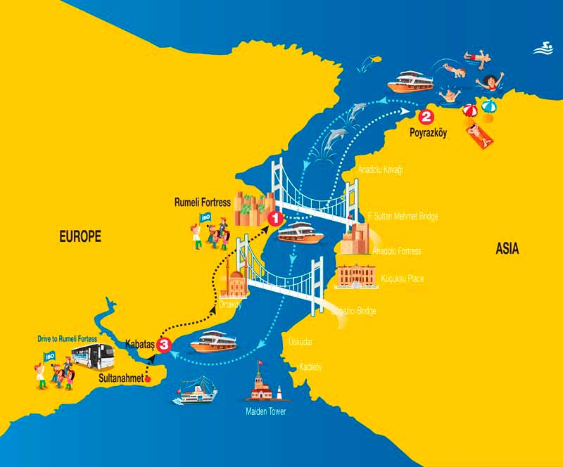 Уникальная локация — пролив Босфор соединяет Чёрное и Мраморное моря и является самым узким межконтинентальным проливом в мире.